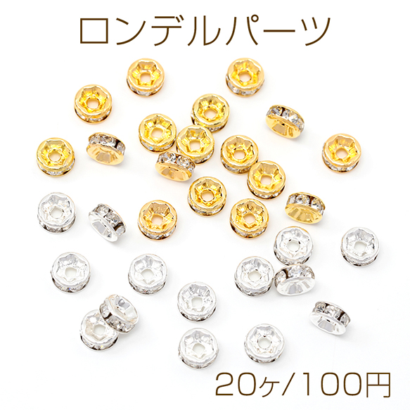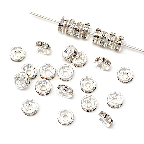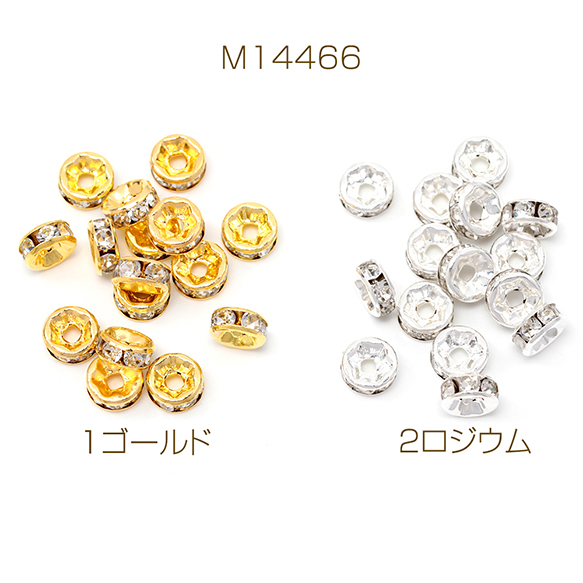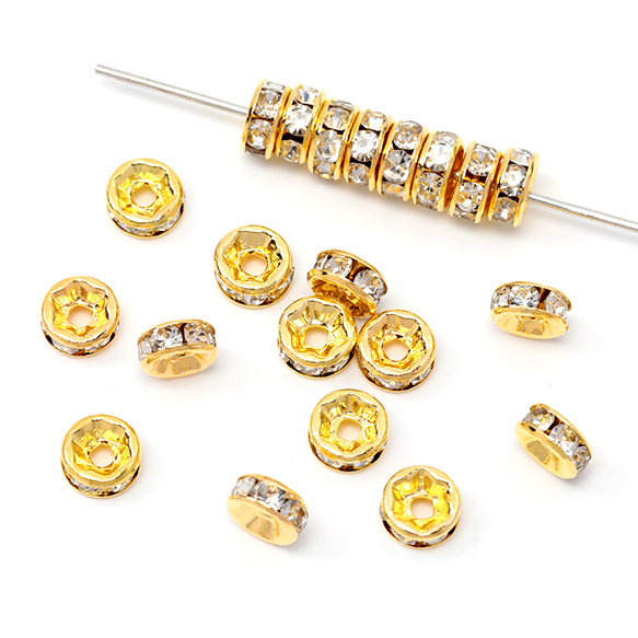ロンデルパーツ 平型 銅製 ストーン付き スペーサービーズ メタルビーズ 約4mm(20ヶ)