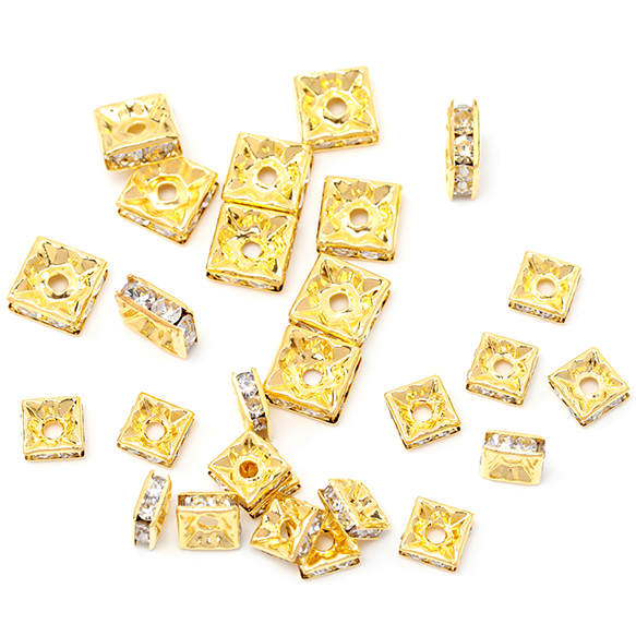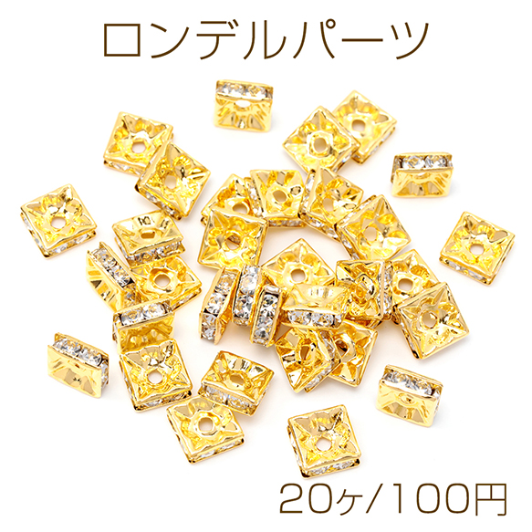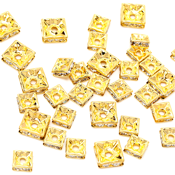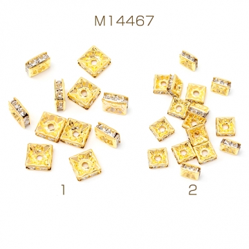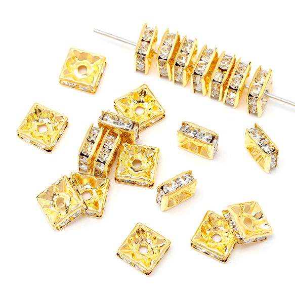 ロンデルパーツ スクエア型 銅製 ストーン付き スペーサービーズ メタルビーズ 全2種(20ヶ)
