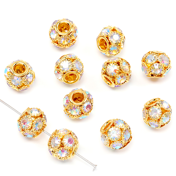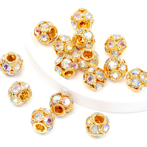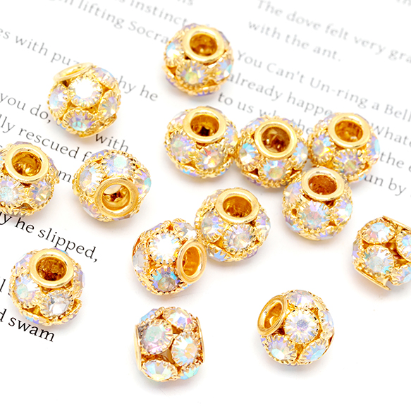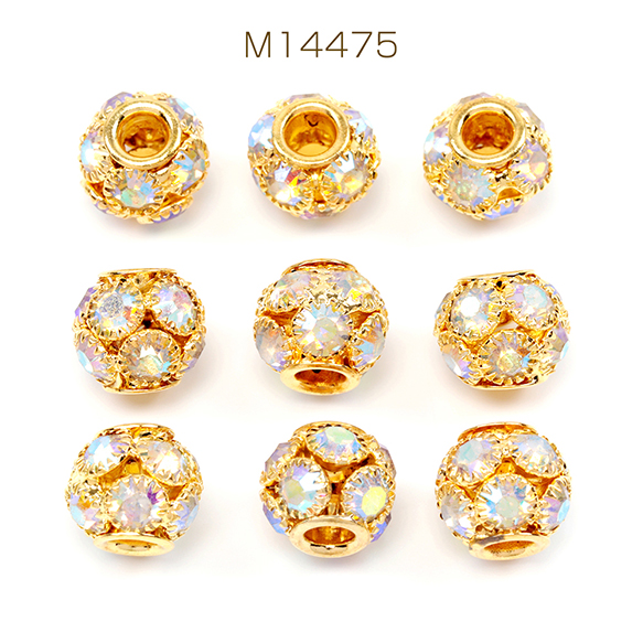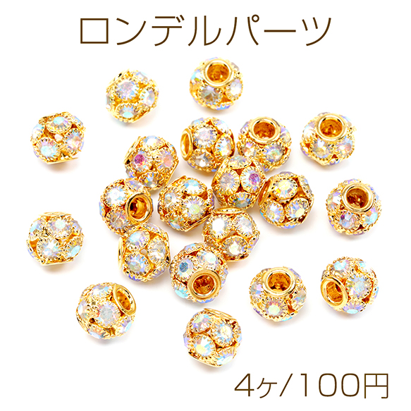 ロンデルパーツ 球型 鉄製 ABカラー爪付きストーン スペーサービーズ メタルビーズ 約12mm(4ヶ)