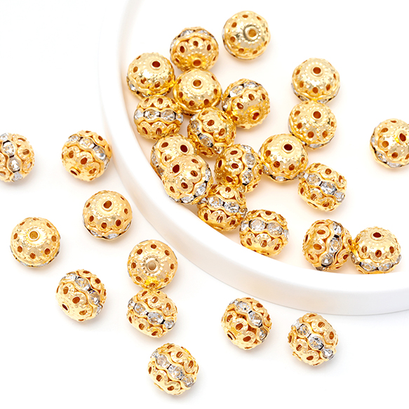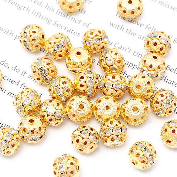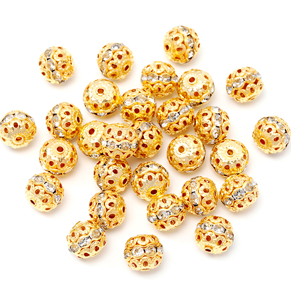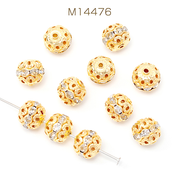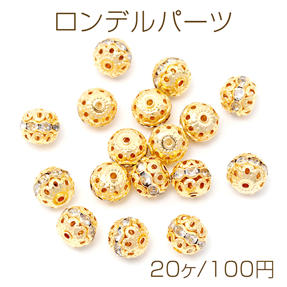 ロンデルパーツ 球型 毬 鉄製 ストーン付き スペーサービーズ メタルビーズ 約10mm(20ヶ)