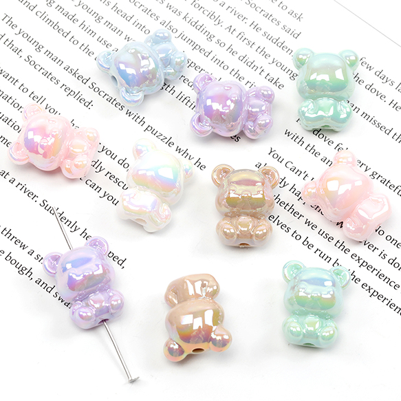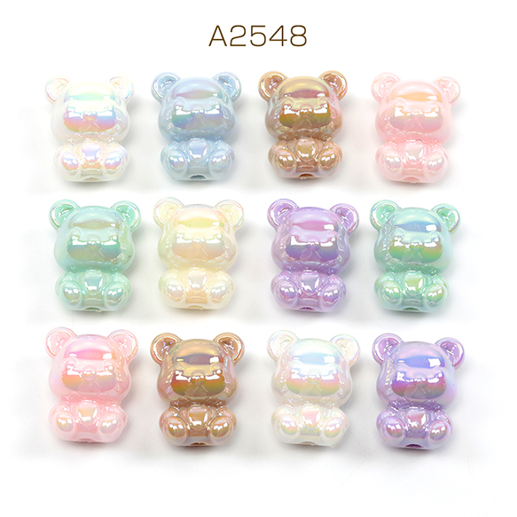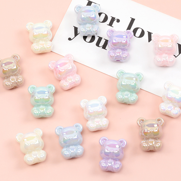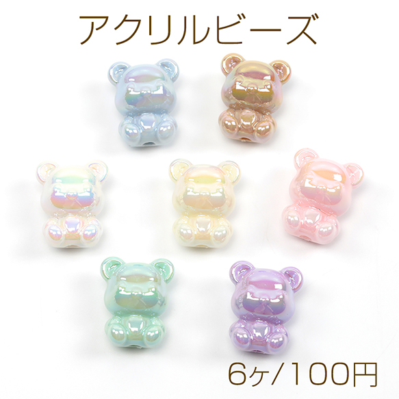 アクリルビーズ クマ 熊 ベア オーロラ加工 アニマルビーズ 立体動物ビーズ 縦穴 約 17×21mm(6ヶ) ※ランダム発送