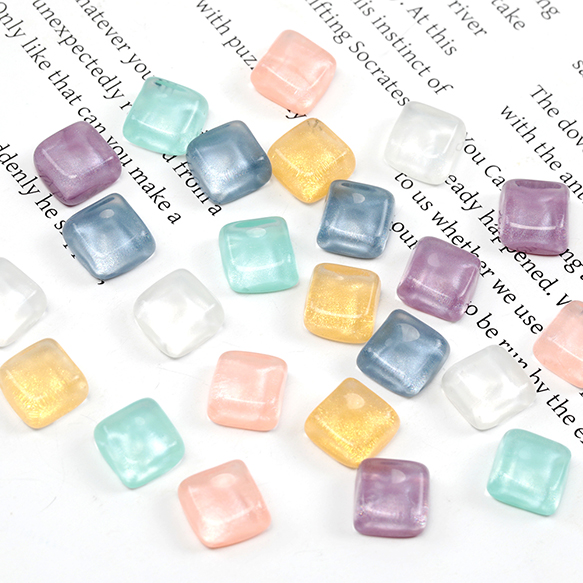 樹脂パーツ デコパーツ 貼り付けパーツ 半透明 長方形 約9×9mm(10ヶ)