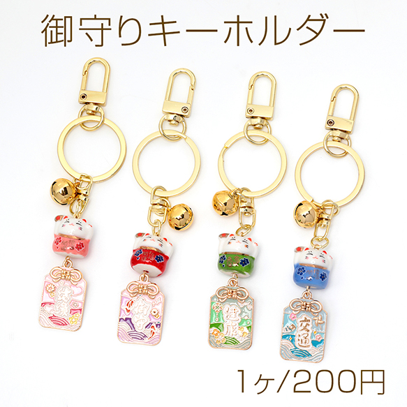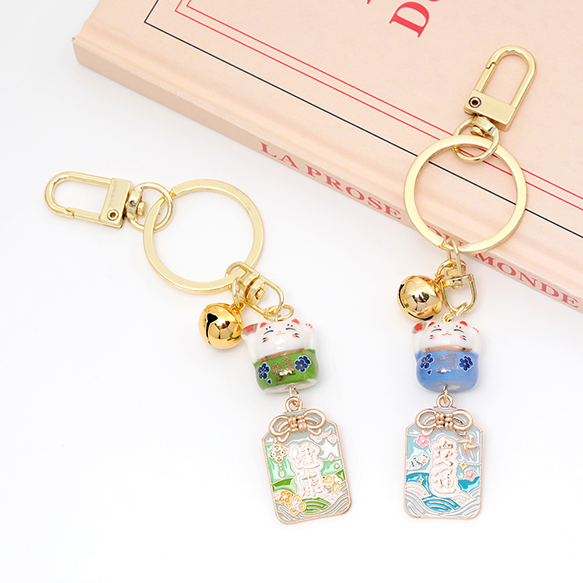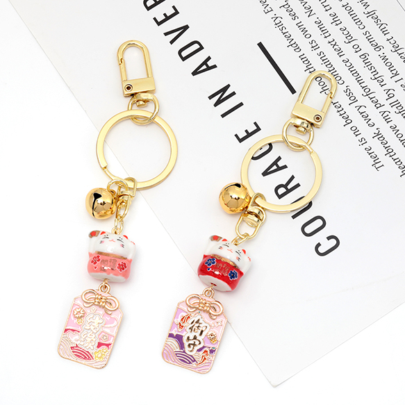御守りキーホルダー 和風すずストラップ 縁起物 縁起の良い魔よけの鈴 招き猫 縁結び 交通安全 健康運 ランダム発送(1個)