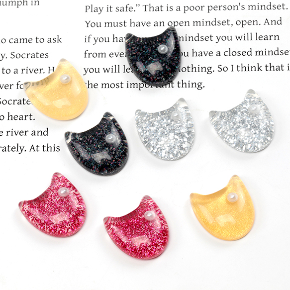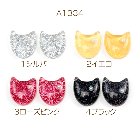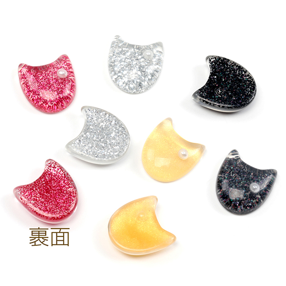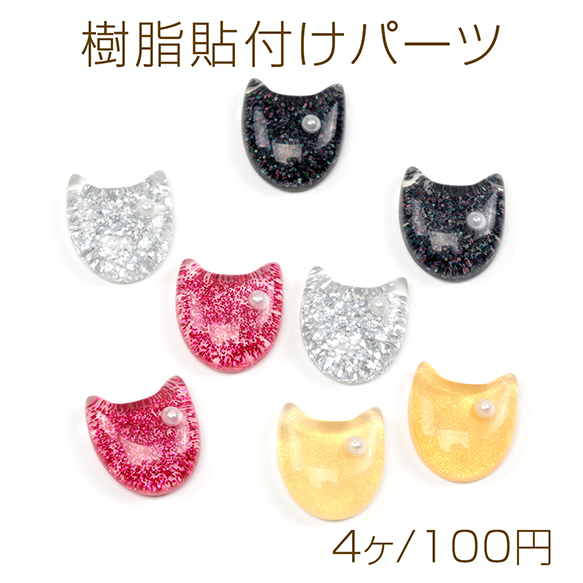 樹脂貼付けパーツ 猫顔 猫フェイス キャット ラメ入り アニマルデコパーツ 動物カボション 約16×17mm(4ヶ)