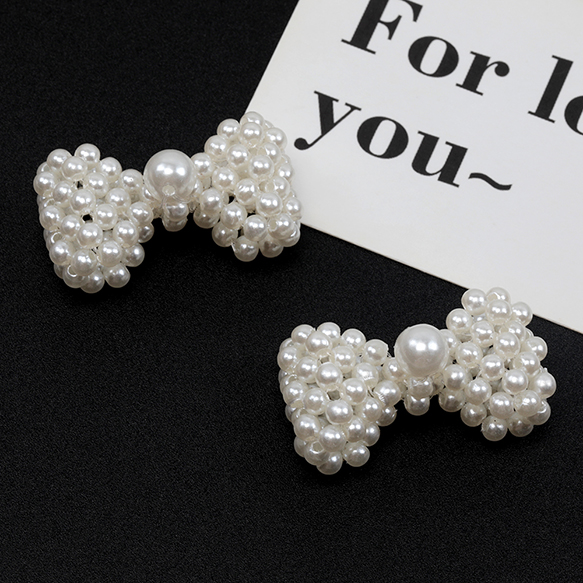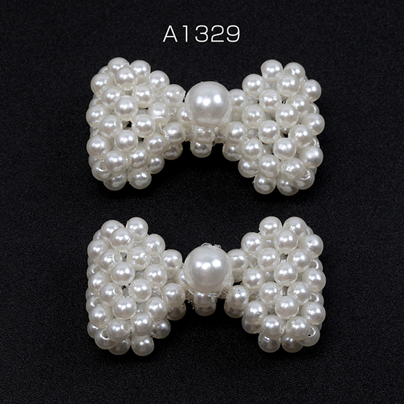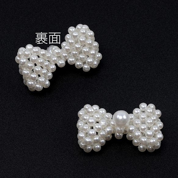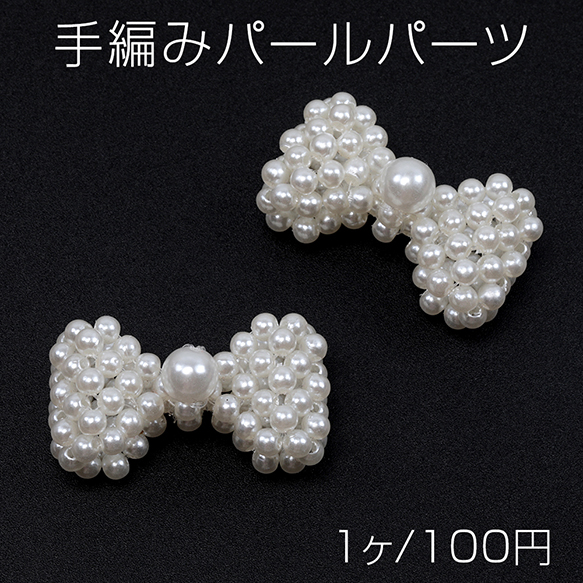 手編みパールパーツ リボン型 りぼん 1個ずつ手作り ヘアアクセ制作におすすめ 貼付け 縫付け可 約2×4cm(1ヶ)