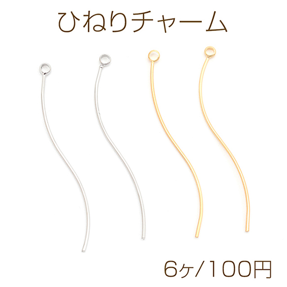 ひねりチャーム ウェーブスティックチャーム メタルウェーブスティックチャーム 波型 1カン付き 約0.5×33mm(6ヶ)