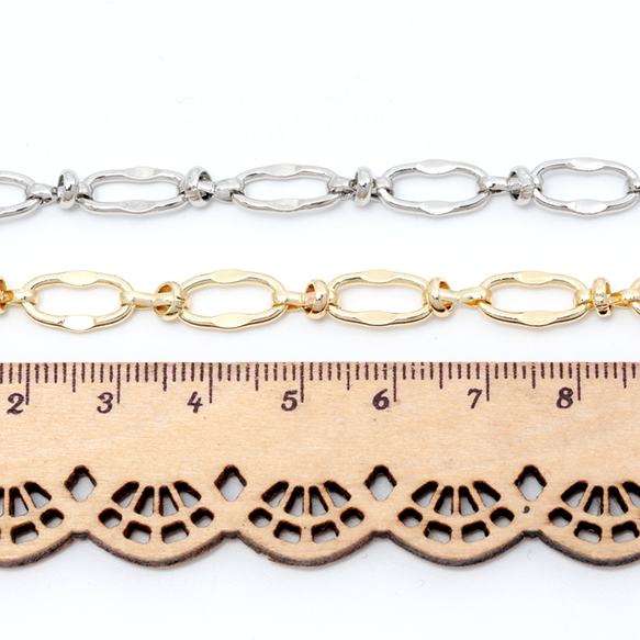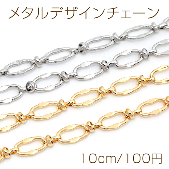 メタルデザインチェーン 変形オーバル 鉄製 ハンドメードチェーン デザインチェーン 幅約7mm(長さ10cm)