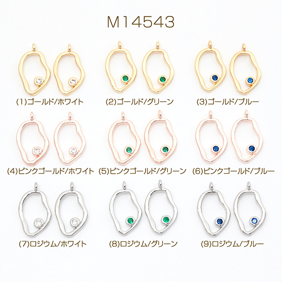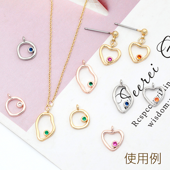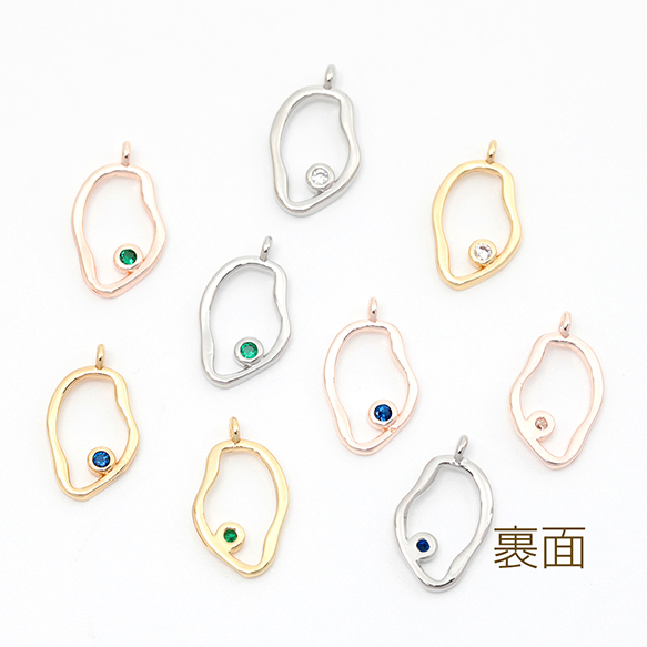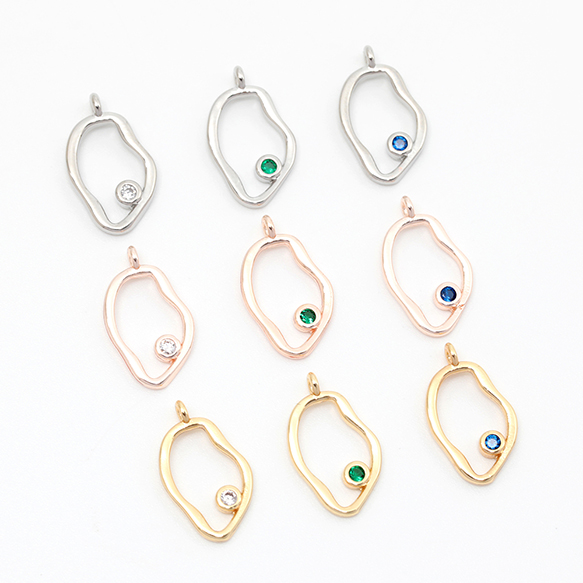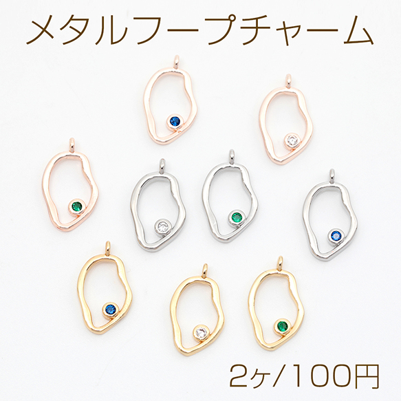 メタルフープチャーム ジルコニアチャーム リングチャーム 誕生石チャーム フレームチャーム 1カン付き 約9×15mm(2ヶ)