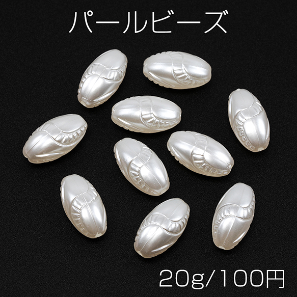 パールビーズ ホワイトカラー 楕円形 模様入り ABS樹脂製 穴あり 約10×19mm(約20g)