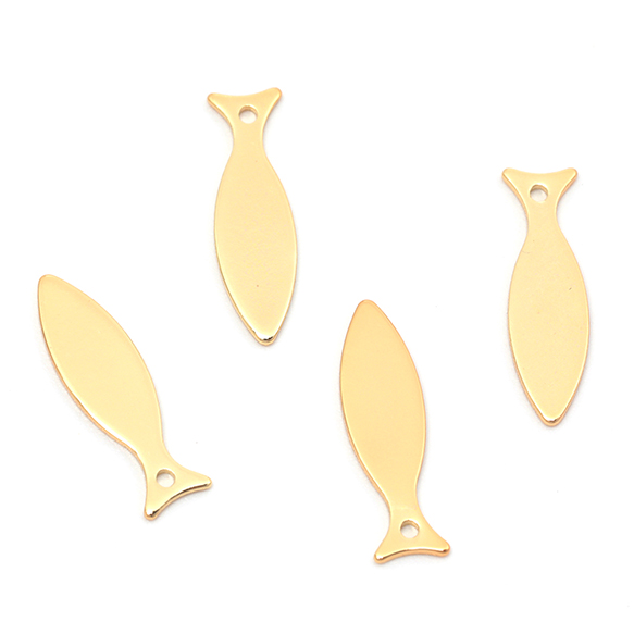 メタルプレートチャーム 銅製 サカナ 魚 メタルパーツ メタルチャーム 1穴 約4×15mm(6ヶ)