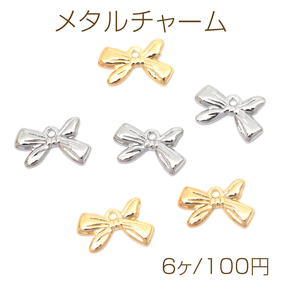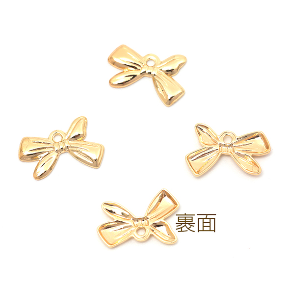 メタルチャーム 銅製 リボン 蝶々結び メタルパーツ 1カン付き 約7×11mm(6ヶ)