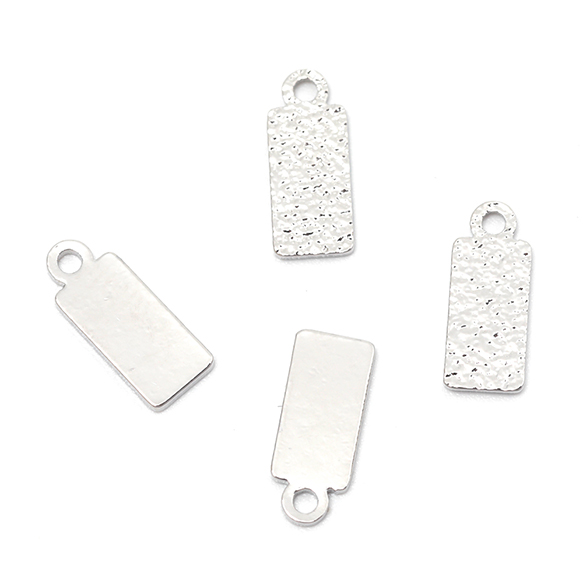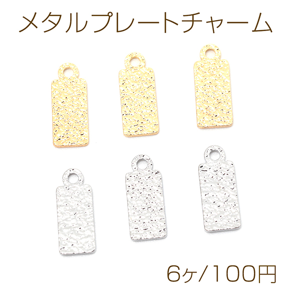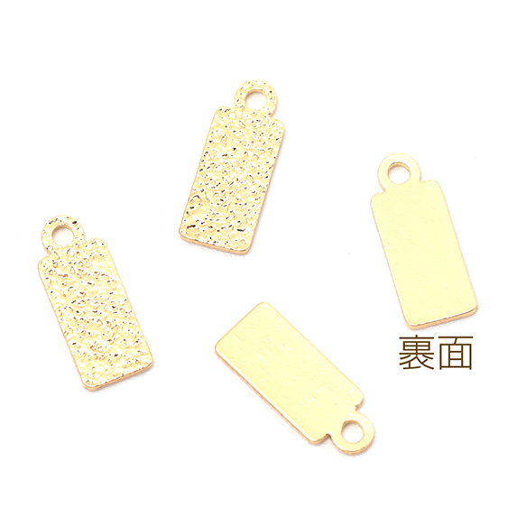 メタルプレートチャーム 銅製 凹凸加工 長方形 メタルパーツ メタルチャーム 1カン付き 約4×10mm(6ヶ)
