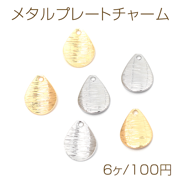 メタルプレートチャーム 銅製 ブラシ加工 アーチ状しずく型 雫 メタルパーツ メタルチャーム 1穴 約9×11mm(6ヶ)