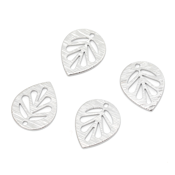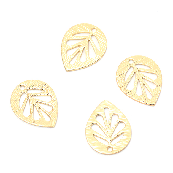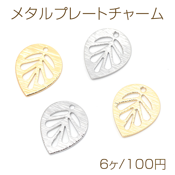 メタルプレートチャーム 銅製 ブラシ加工 リーフ 葉っぱ メタルパーツ メタルチャーム 1穴 約11×14mm(6ヶ)