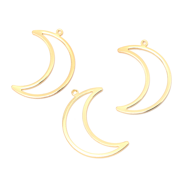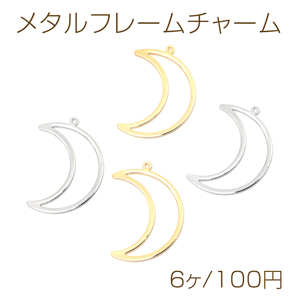 メタルフレームチャーム 銅製 ムーン 月 フレームチャーム メタルパーツ 1カン付き 約18×26mm(6ヶ)