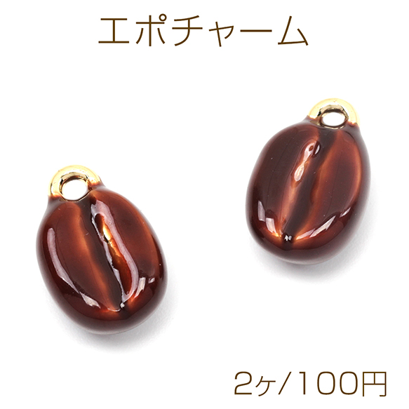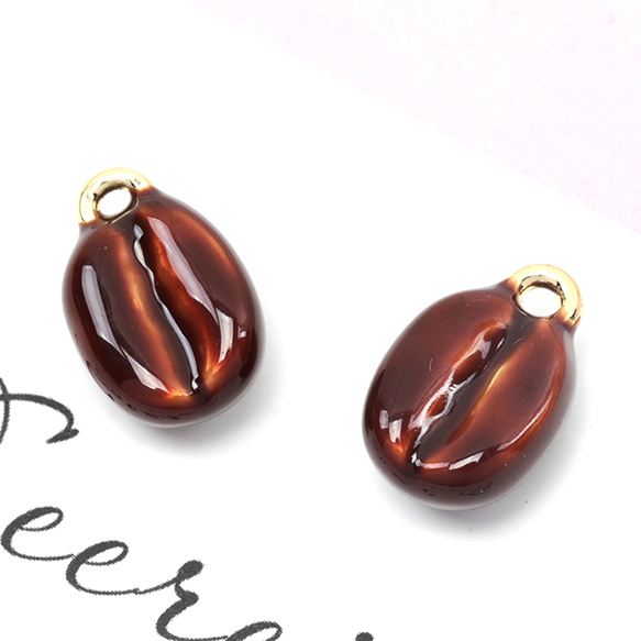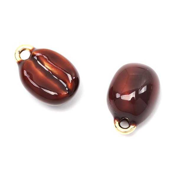 エポチャーム 合金製 コーヒー豆 カフェ ミニチュア メタルチャーム 約8×13mm(2ヶ)