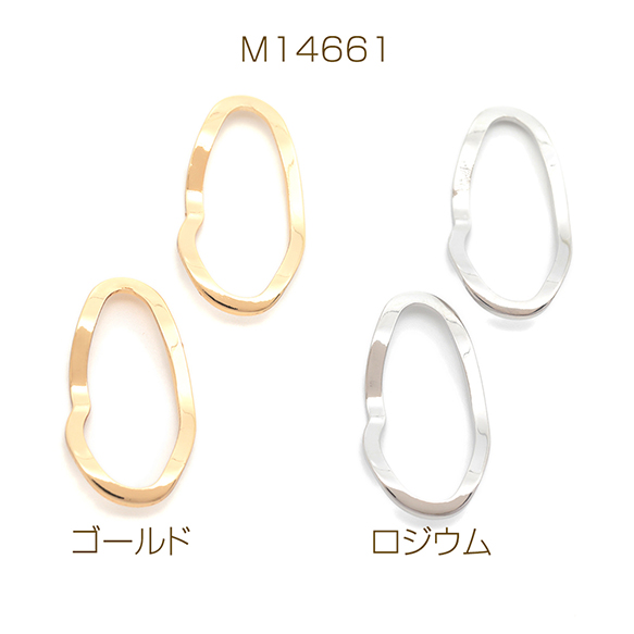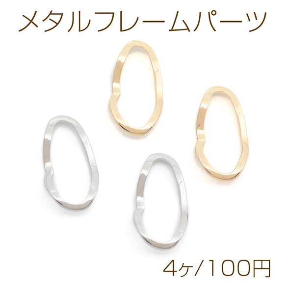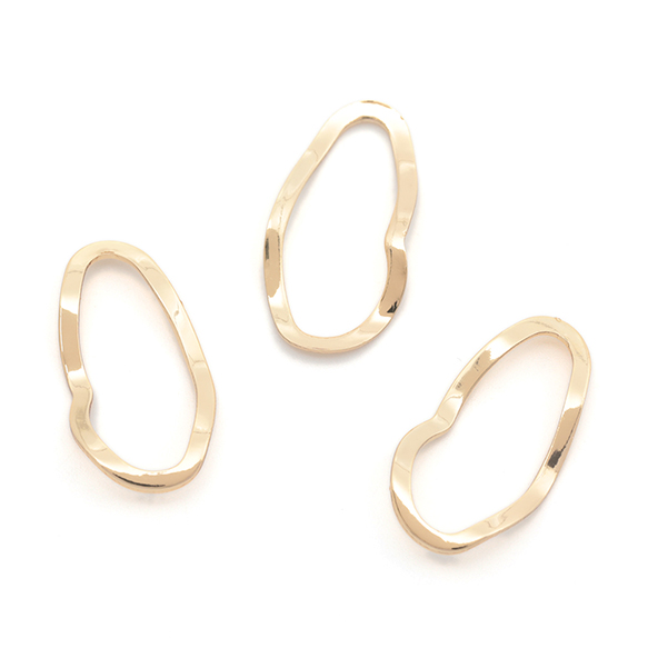 メタルフレームパーツ 銅製 不規則オーバル 幾何学 ウェーブ加工 メタルパーツ メタルチャーム 約13×25mm(4ヶ)