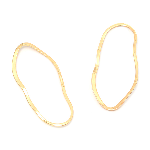 メタルフレームパーツ 銅製 不規則オーバル 幾何学 ウェーブ加工 メタルパーツ メタルチャーム 約19×41mm(4ヶ)