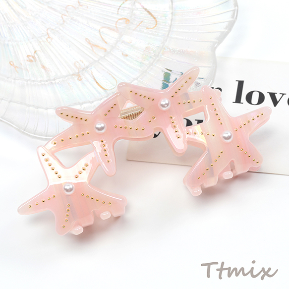 バンスクリップ アセテート ヒトデ マーメイド マリン 髪飾り 髪留め 約5×10.5cm(1ヶ)※メール便不可