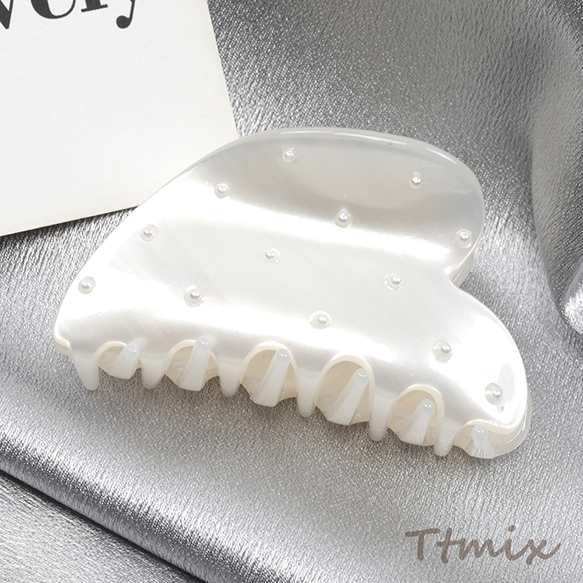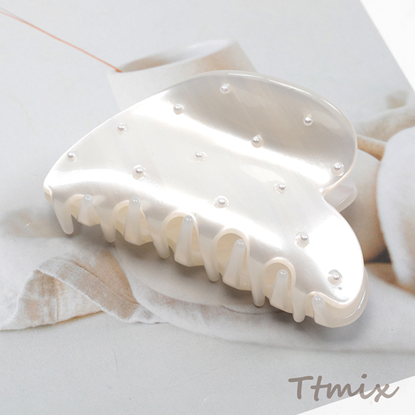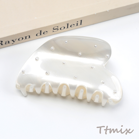 バンスクリップ アセテート パール付き エレガント 髪飾り 髪留め 約4.5×7.5cm(1ヶ)※メール便不可