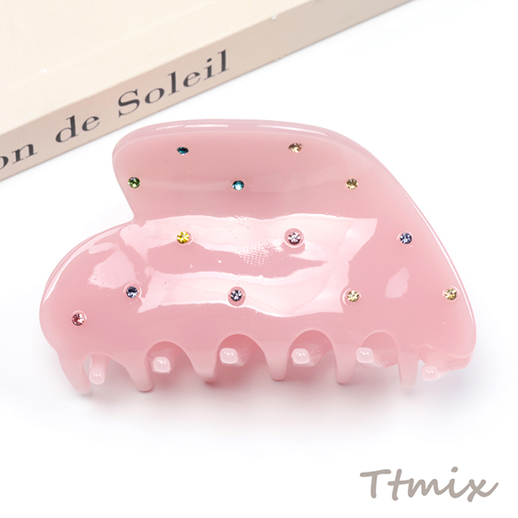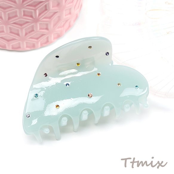 バンスクリップ アセテート ミルキーカラー カラフル 石付き 髪飾り 髪留め 約4.5×7.5cm(1ヶ)※メール便不可