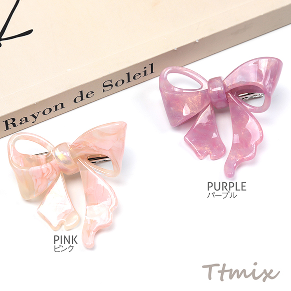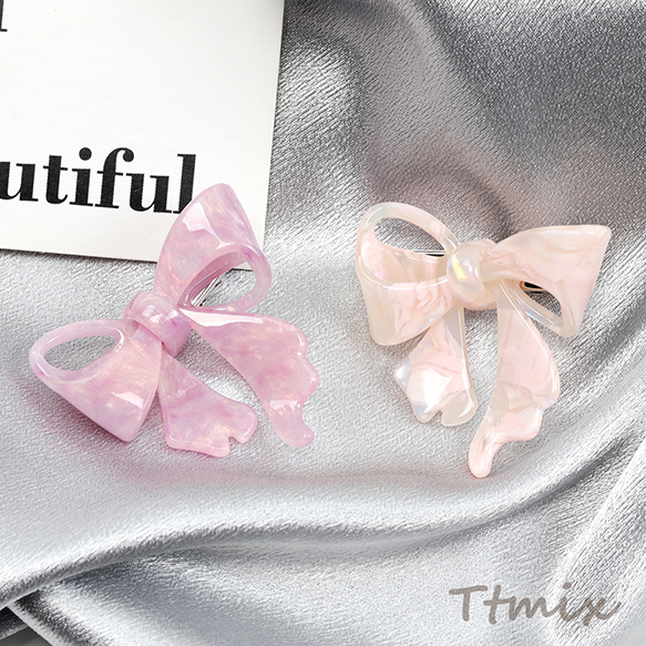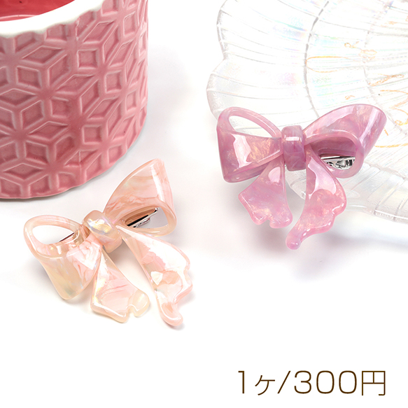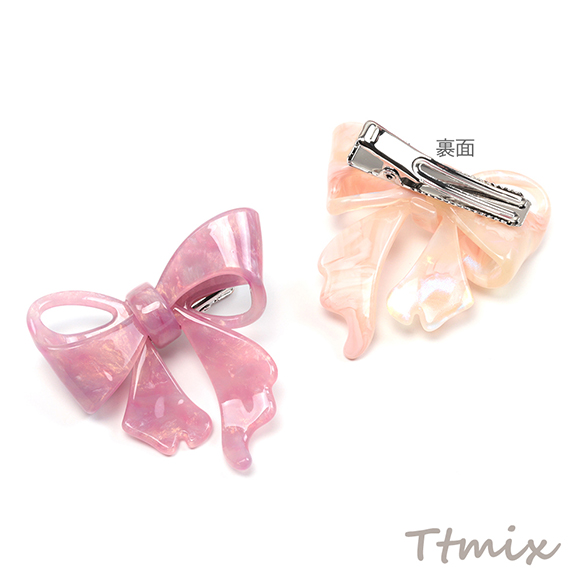 ヘアクリップ 鉄製/アセテート リボン 髪飾り 髪留め 約4.8×5cm(1ヶ)