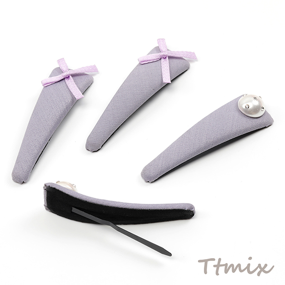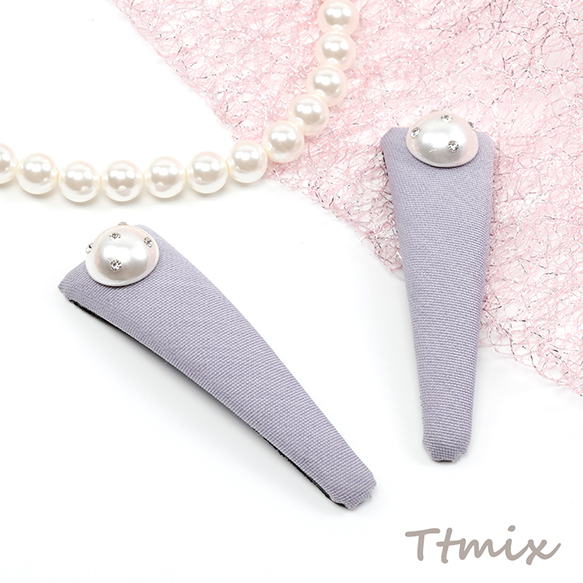 ヘアクリップ 鉄製 パール/リボン 三角形 髪飾り 髪留め 約2×7cm(1ヶ)