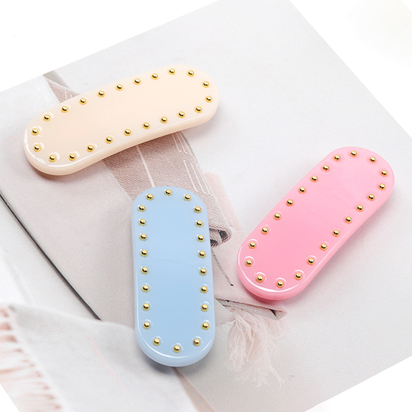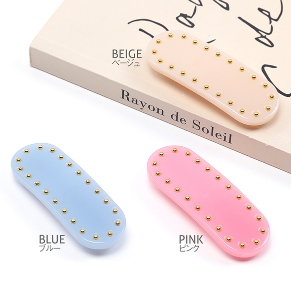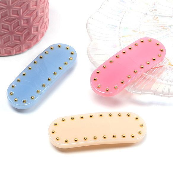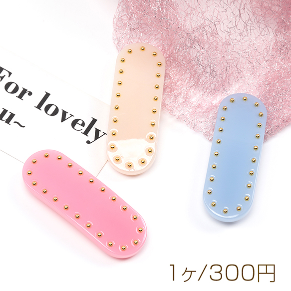 卸売ヘアクリップ 鉄製/アセテート ゴールドビーズ付き 髪飾り 髪留め 約2.5×7.5cm(1ヶ)