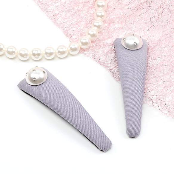 卸売ヘアクリップ 鉄製 パール/リボン 三角形 髪飾り 髪留め 約2×7cm(1ヶ)