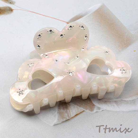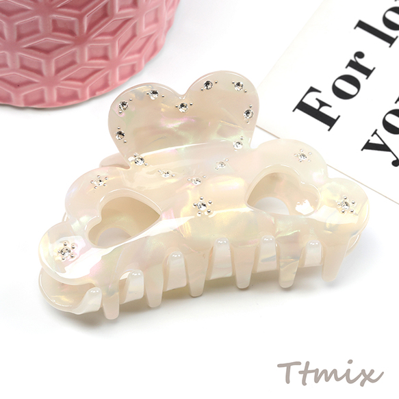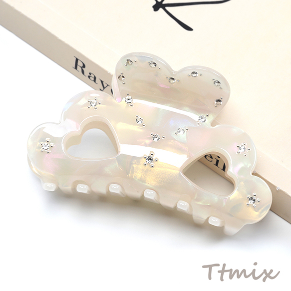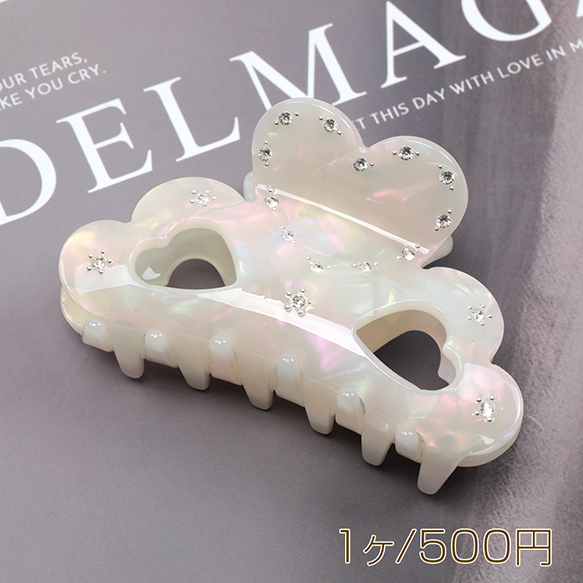 バンスクリップ アセテート ハート ロリータ キラキラ石付き 髪飾り 髪留め 約5×8cm(1ヶ)※メール便不可