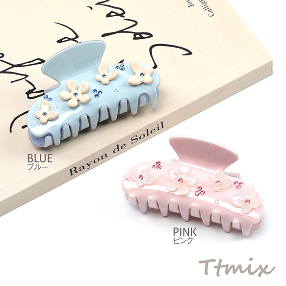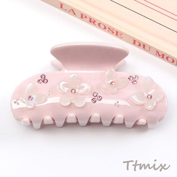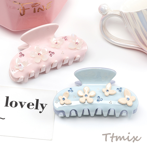 バンスクリップ アセテート フラワー 花 ミルキーカラー ヘアアクセサリー 髪飾り 約4×8cm(1ヶ)※メール便不可