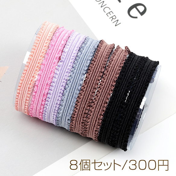 ヘアゴム レース風 可愛い キュート カラーミックス 高弾性 ヘアアクセサリー 髪飾り 約6cm(8個セット)※メール便不可