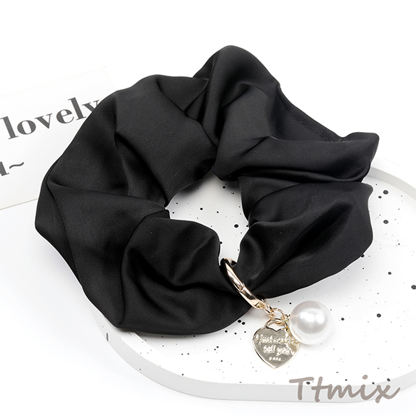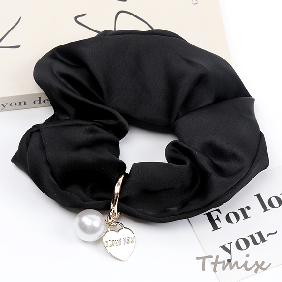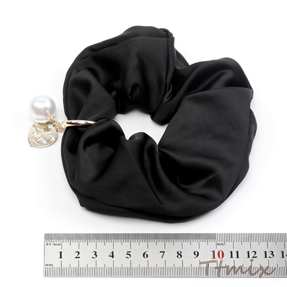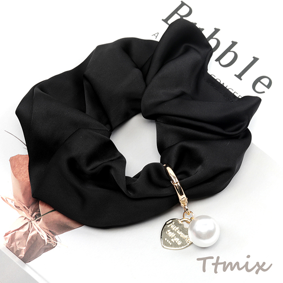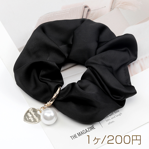 シュシュ チャーム付き ブラック 上品 大人カワイイ シンプル ヘアゴム ヘアアクセサリー 髪留め 髪飾り(1ヶ)