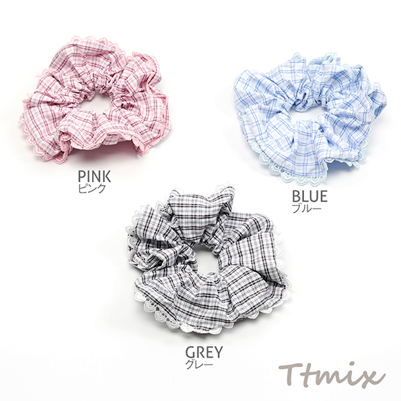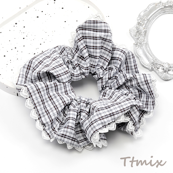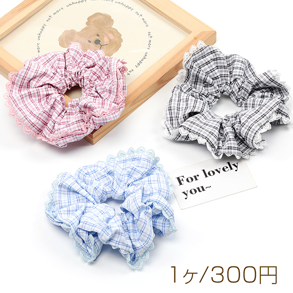 シュシュ チェック柄 可愛い キュート ヘアゴム ヘアアクセサリー 髪留め 髪飾り(1ヶ)