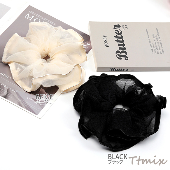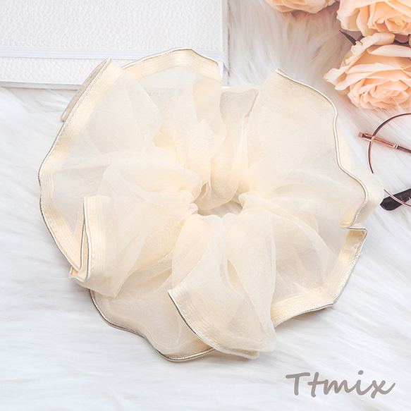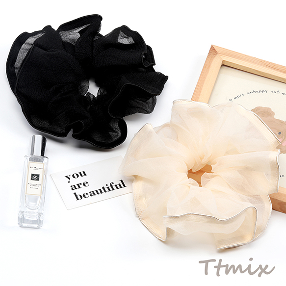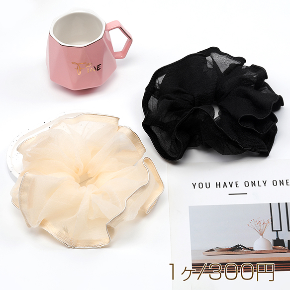 シュシュ 透け感 シンプル 高級感 大きめ二重プリーツ ヘアゴム ヘアアクセサリー 髪留め 髪飾り(1ヶ)