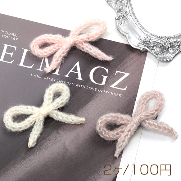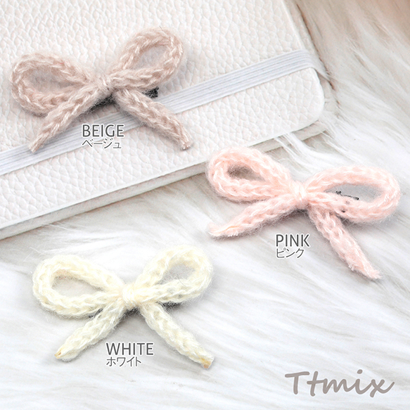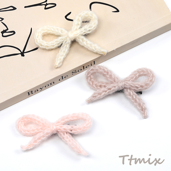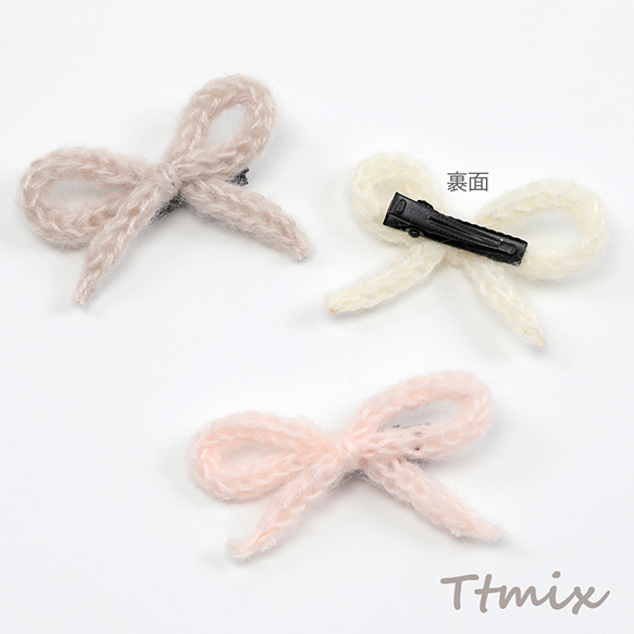リボンヘアクリップ リボンニットヘアクリップ サイドクリップ ベビークリップ キッズヘアクリップ 1ペア