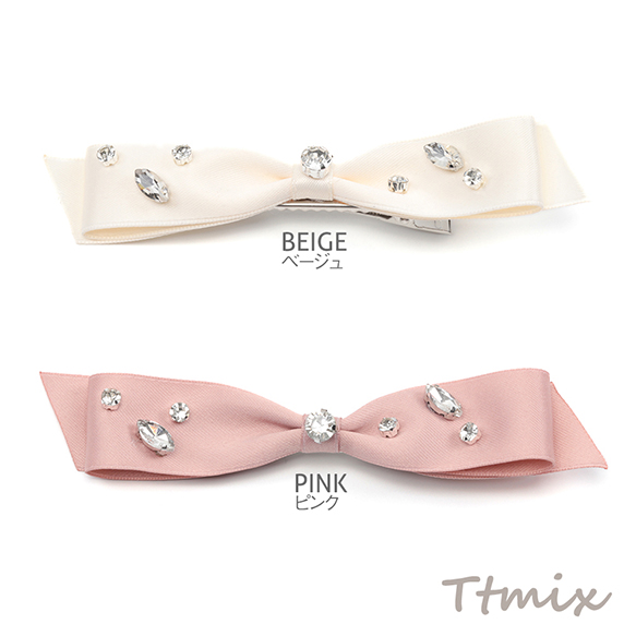 リボンヘアクリップ りぼんヘアクリップ ビジュー付きへアピン サイドクリップ 1個