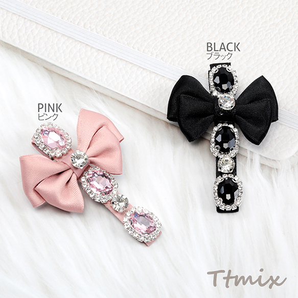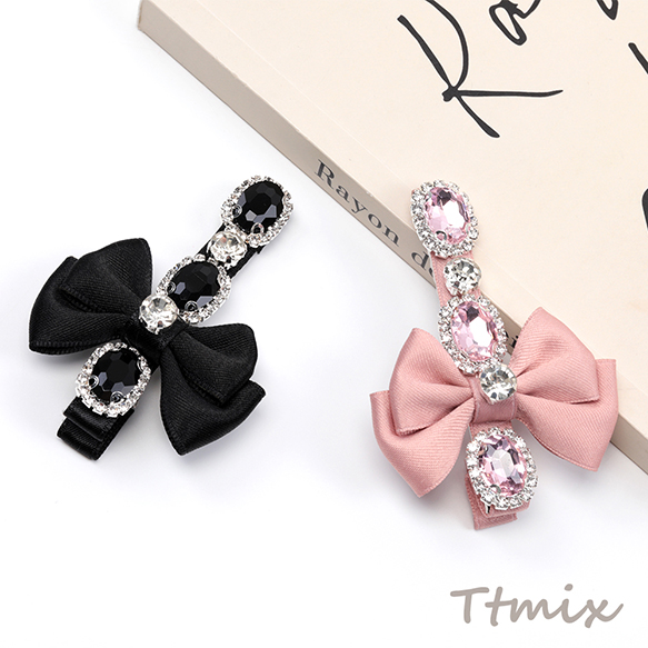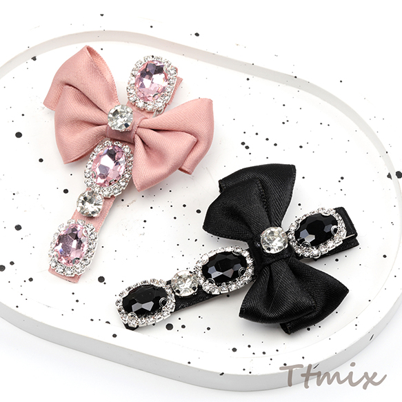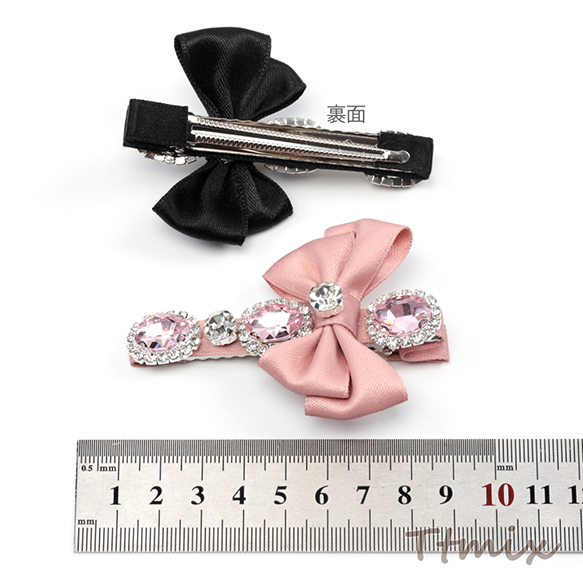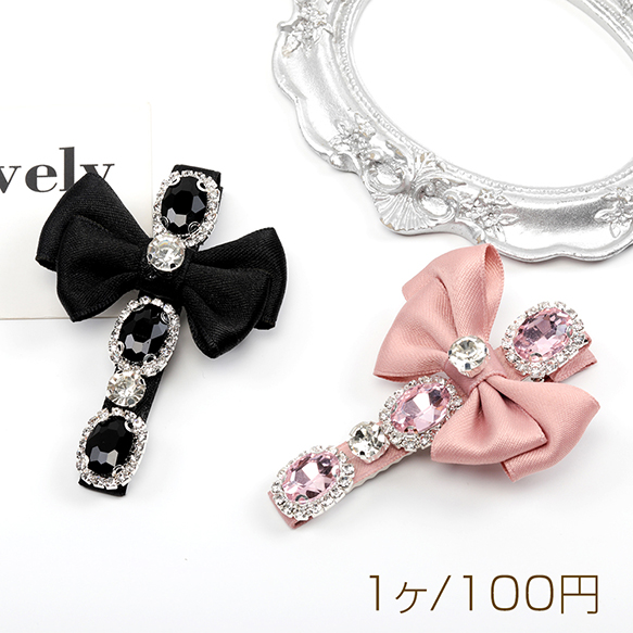 ビジューヘアクリップ リボンヘアクリップ りぼんヘアクリップ ビジュー付きへアピン サイドクリップ 1個