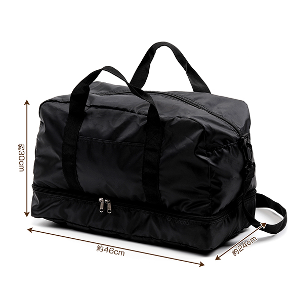 トラベルバッグ ナイロン 二層式 大容量バッグ ボストンバッグ 旅行用 約24×30×46cm(1ヶ)