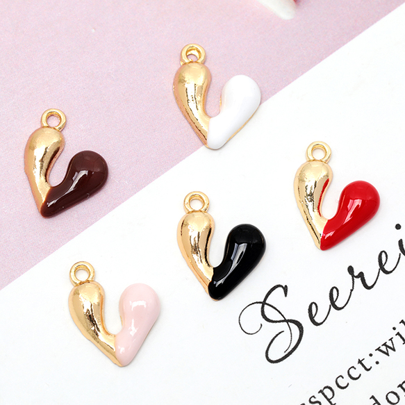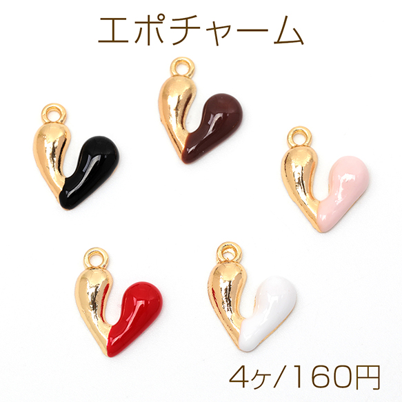 エポチャーム 合金製 ハート バイカラー メタルチャーム 1カン付き 約11×14mm(4ヶ)