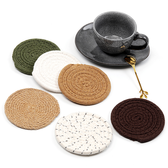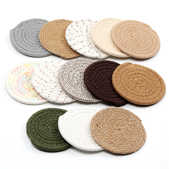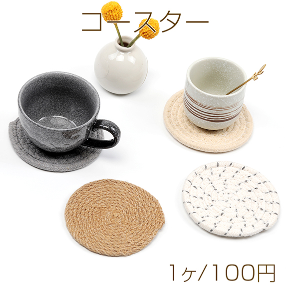 コースター リネン 手編み 和風コップ敷き ボウルマット 北欧風コースター キッチン用品 約11cm(1ヶ)