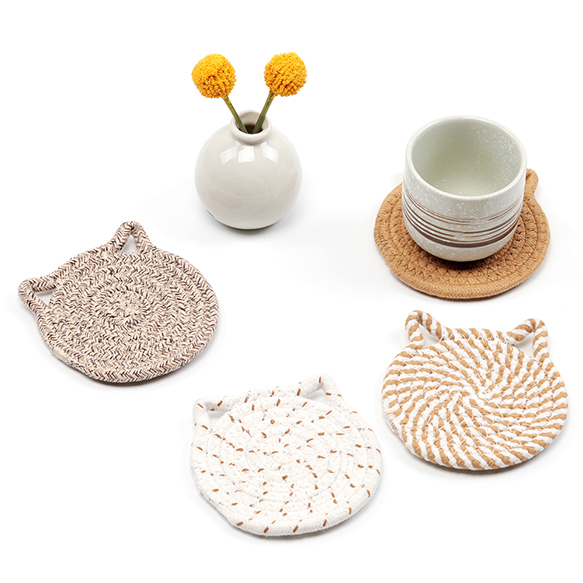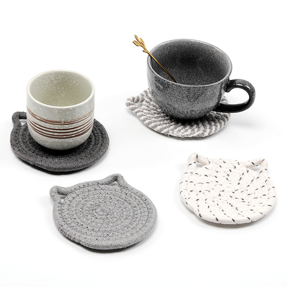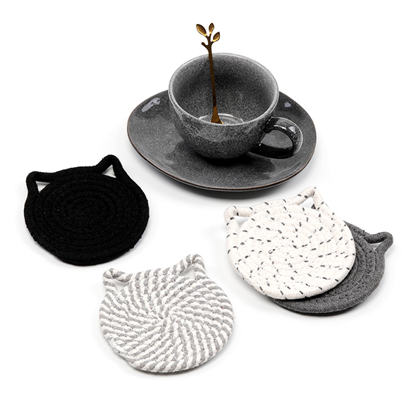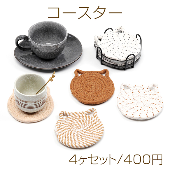 コースター コットン 猫耳型コースター ねこ キャット キッチン用品 約11cm(4ヶセット)