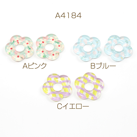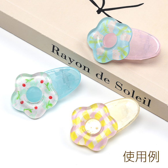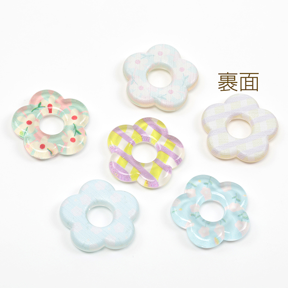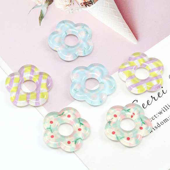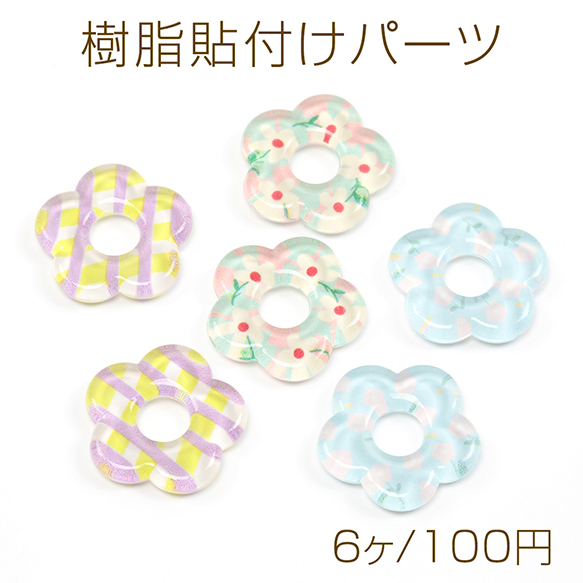 樹脂貼付けパーツ 樹脂製 ドーナツ型 フラワー 花 半面貼り付けパーツ カボション デコパーツ 約25mm(6ヶ)