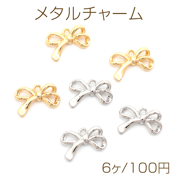 メタルチャーム 合金製 リボン 蝶々結び メタルパーツ 約11×14mm(6ヶ)