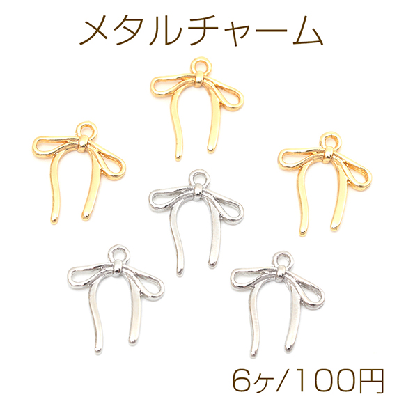 メタルチャーム 合金製 リボン 蝶々結び メタルパーツ 約13×16mm(6ヶ)