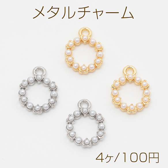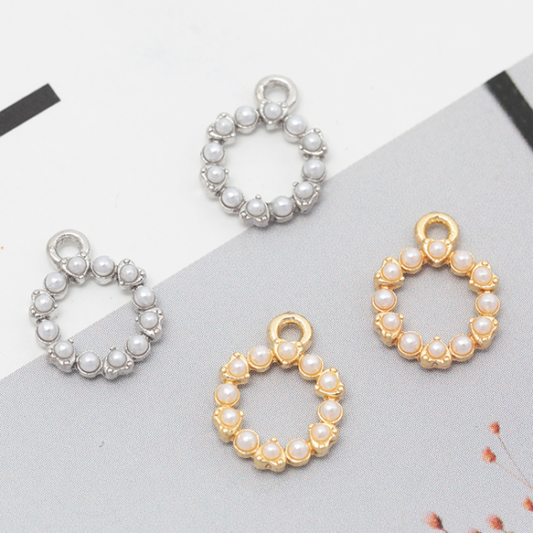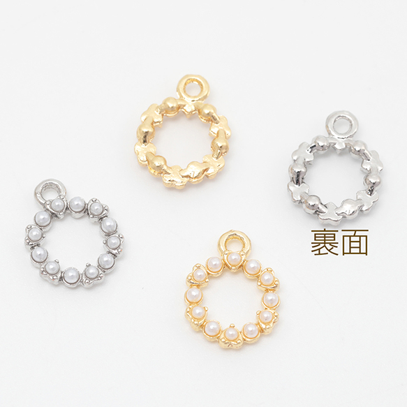 メタルチャーム メタルパーツ フラワー お花 パール付き 合金製 約9×12mm(4ヶ)