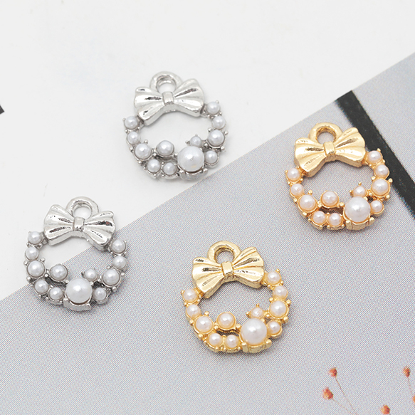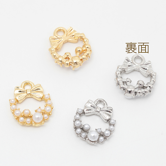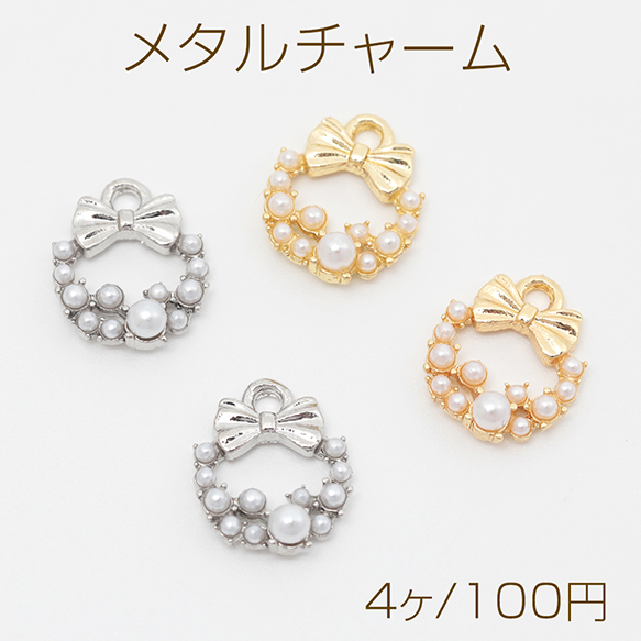 メタルチャーム メタルパーツ フラワー 蝶 お花 パール付き 合金製 約10×12mm(4ヶ)