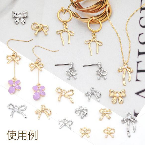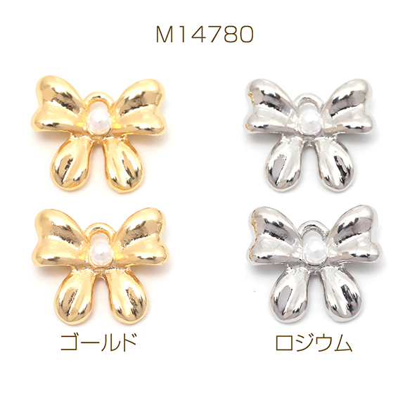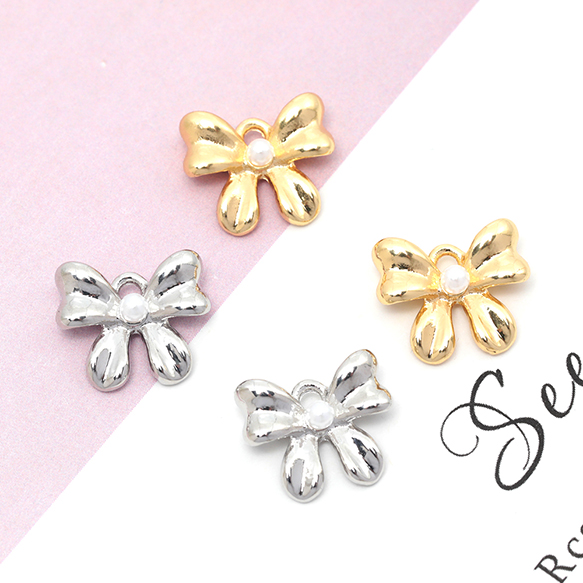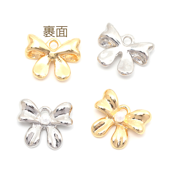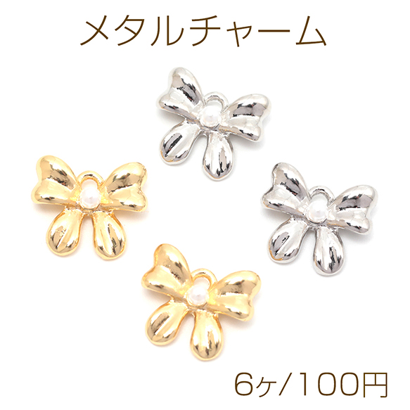 メタルチャーム メタルパーツ 蝶 パール付き 蝶々 合金製 約11×12mm(6ヶ)