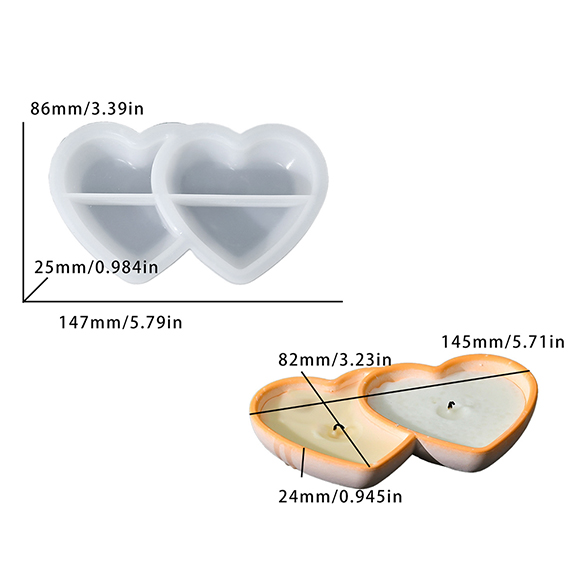シリコンモールド レジンシリコンモールド ハート キャンドル 147×86×25mm(1ヶ)