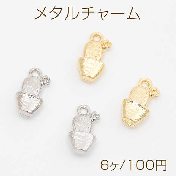 メタルチャーム 合金製 サボテン 花 立体チャーム メタルパーツ 約7×14mm(6ヶ)